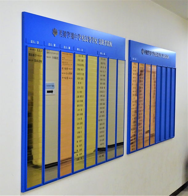 茗溪学園中学校高等学校 40周年記念事業 寄付者銘板 (事務室横)