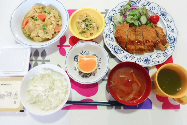 寮生全員が食堂で朝食、昼食(給食)、夕食をとります。朝夕食はビュッフェ形式で、管理栄養士の指導のもと、栄養バランスのよいメニューとなっております。友人と和気あいあい、一日の出来事を共有しながら楽しい時間を過ごします。