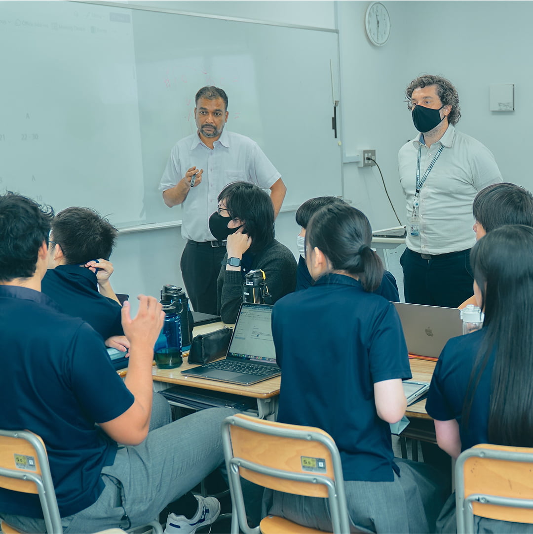 both Japanese and English. From January of Senior 1, they begin to the worldwide-standard curriculum.