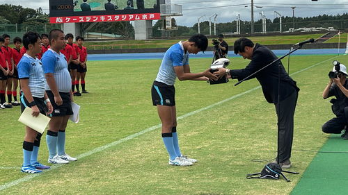 本校中学ラグビー部は、9月14日から16日にケーズデンキスタジアム・ツインフィールド(茨城県水戸市)にて開催された、「太陽生命カップ2024 第15回全国中学生ラグビーフットボール大会」に出場いたしました。1回戦の天理市立西中学校・大和郡山市立郡山中学校に62-0、2回戦の大阪市立東生野中学校には27-0、そして決勝では京都市立伏見中学校を相手に31-12で勝ち、三連覇を達成いたしました。