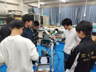 科学部天文班は、11月1日の新月の日に夜間観測会を実施しました。あいにくの天気で屋外で星空を観察することはできませんでしたが、高校生が中学生に赤道儀や電子接眼レンズの使い方を指導したり、卒業生などに寄付していただいた望遠鏡を組み立てたりするなど、充実した活動を行いました。