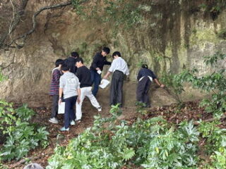 理科の学びでは、実際に見て触って、体感しながら考えることがとても重要です。しかし、学校内では触れることができる生物は限られており、岩石を観察することはできても地形を実際に観察することは大変難しいものです。本校では、普段はなかなか見る機会のないものを観察することで、自然への理解を深めることを目的として、理科巡検を行っています。