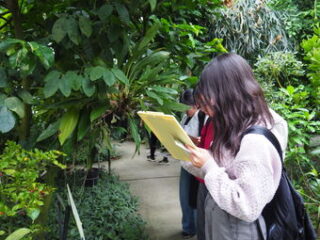 大洗水族館へ行き、動物の進化や環境エンリッチメントについて考えることと、筑波実験植物園にて、日本におけるバイオームについて学ぶことを目的としました。環境エンリッチメントとは、「動物のすむ環境や管理方法を、動物の生息環境や行動に基づいて改善・向上させるための工夫」のことを言います。生徒たちは大洗水族館の動物や水槽を観察し、どんな環境エンリッチメントが実施されているかや、その改善方法を考えました。また、つくば実験植物園では、植物がどのような適応をしているのかという観点から植物を観察し、考察しました。