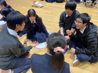 中学3年生は、先日行われたタイ研修旅行での経験を踏まえながら、「異文化を理解するとは」というテーマでレポートの作成を行っています。その中で、衣服や交通状況など目に見えて分かる文化の違いだけではなく、もっと抽象的な目に見えない「違い」を理解するにはどうすれば良いか、という問いの真意に接近するために、高校1年生との交流の中で、互いに「異文化の理解」「国際的な視野を持つ」とはどういうことかを議論しました。