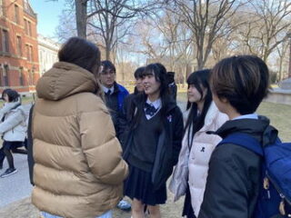 ハーバード大学やマサチューセッツ工科大学(以下、MIT)も訪問し、生徒たちはガイドの学生に積極的に質問を投げかけながら、大学の歴史や研究内容について理解を深めました。また、MITの研究所に勤める本校の卒業生に講演を依頼し、進路決定のプロセスや大学・大学院での学び、現在の研究内容についてお話しいただきました。この講演は、生徒たちが進路について深く考え、大学進学後の自分の姿を具体的にイメージする契機となりました。