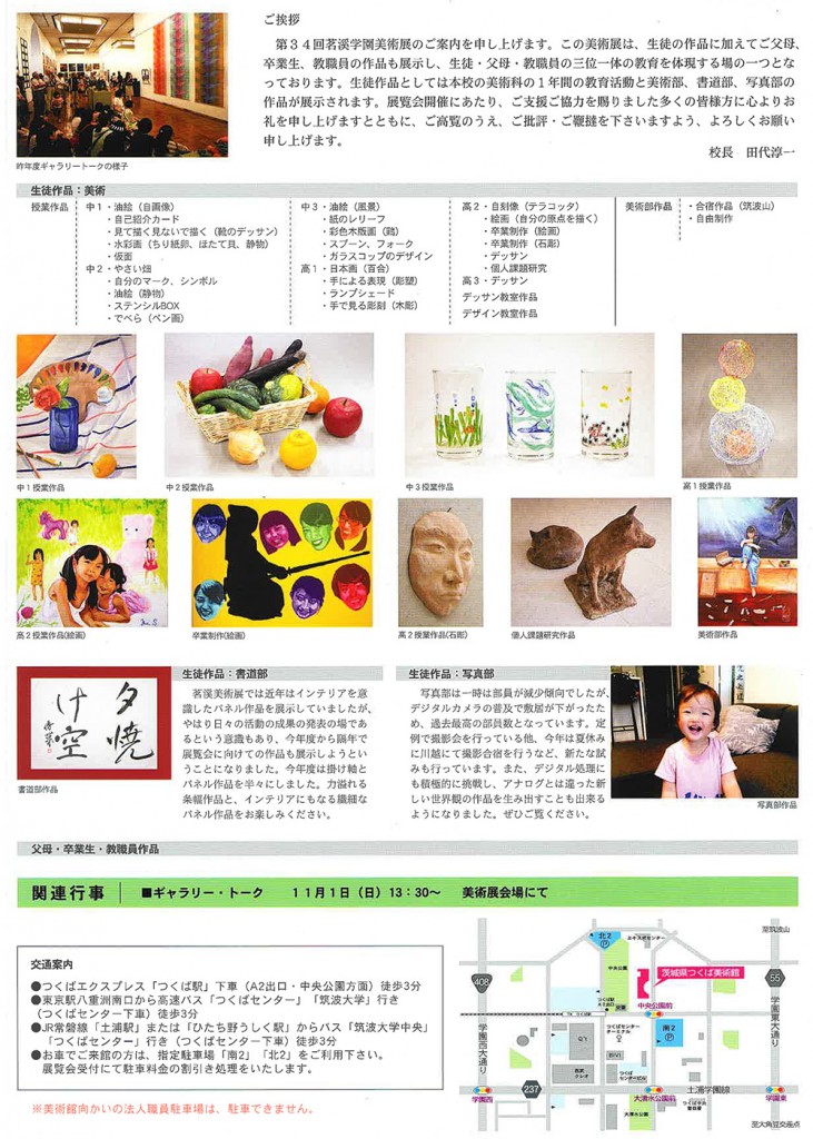 この美術展は、生徒作品に加えてご父母、卒業生、教職員の作品を同時に展示し、生徒・父母・教員「三位一体」の教育を体現する場として、毎年開催しております。