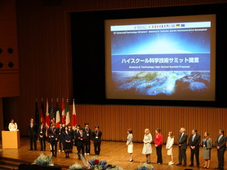 また、今回のG7つくば会合開催に伴い、各国留学生と県内高校生が参加した「ハイスクール科学技術サミット」が2月に行われましたが、その際にまとめた「提言書」を高校3年生 八戸琢磨君が高校生代表として、各国大臣の前で英語で読み上げました。