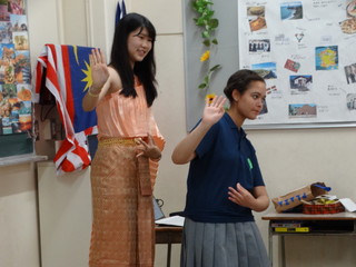 すでにとても上手で、時々クイズも交えながら、タイの文化や学校、家族について