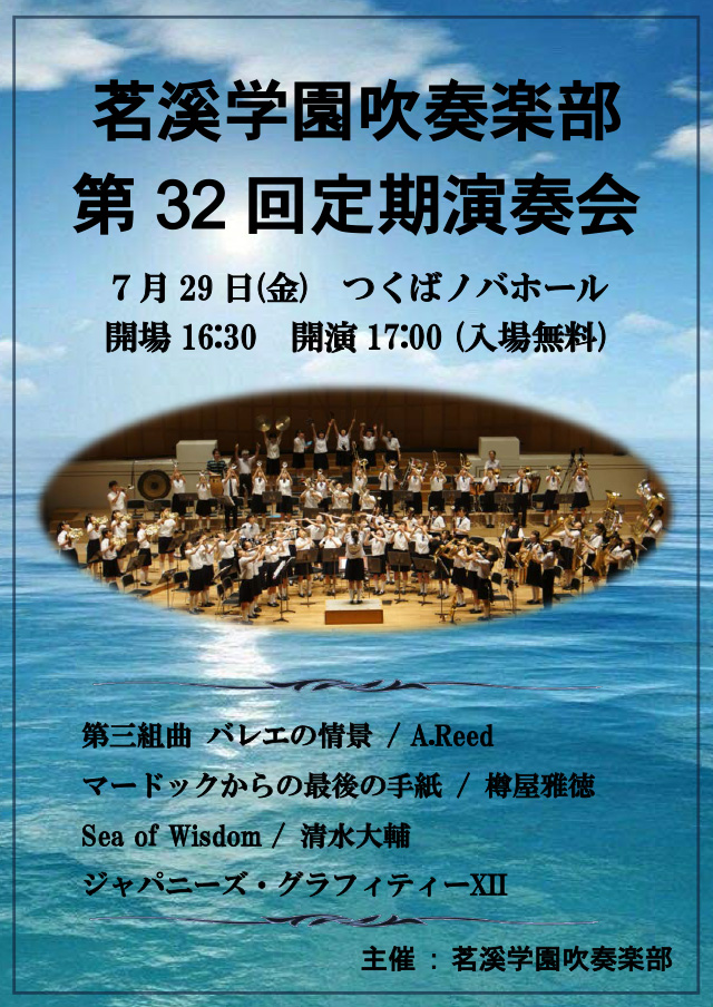 | 主催 | 茗溪学園中学校高等学校 茗溪学園吹奏楽部 |