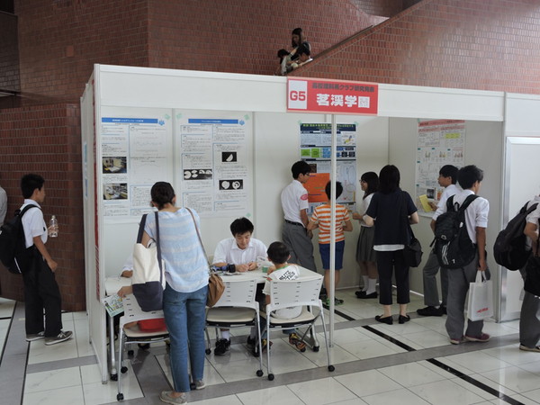 近年、『高校理科クラブ研究発表』という企画があり、本校からは科学部 物理班、生物班が参加し、近隣の高校各校とともにブースを設置しました。