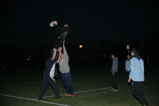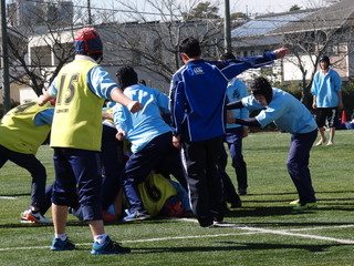 最終日、男子は各フロアーごとのチームでラグビー大会、女子は剣道1級試験に臨みました。