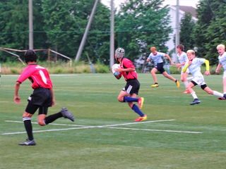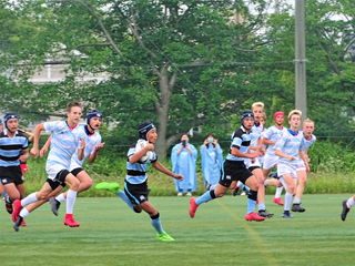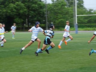 体格も大きく、パワーのあるフランスチームのメンバーに試合前は圧倒されていましたが、最初に茗溪中学ラグビー部 中3チーム、その後に中学2年生チームが対戦しました。試合開始後、少しずつ自分たちのペースをつかみとり、素早いパス回しと得意の機動力でフランスチームを翻弄し、中学3年生、2年生チームともにフランスチームに勝利することができました。