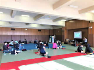 講習会の冒頭に、協会の代表で水戸医療センター救命救急センター長の安田貢先生より、新型コロナウィルス感染症やマスク着用による予防効果について等のご講義を頂きました。その後、実際に胸骨圧迫、AEDの使用などの一次救命処置トレーニングを行いました。