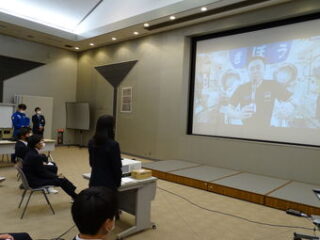 回線がつながった後、最初に星出さんによる重力実験を見せて頂いた後、中1から高2までの男女寮生13名による質疑応答を行いました。星出さんは寮生たちからの宇宙やISSの様子、宇宙飛行士のお仕事等についての質問に、1つ1つ大変丁寧にお答えくださいました。最後の質問の回答が終わった後、25分ギリギリでしたが全員からお礼をお伝えして、ISSとの回線が切れました。