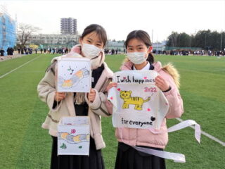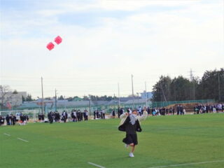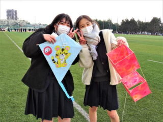 2022年もラグビーグラウンドで、中学2年生 約230名が参加する大会を開催、各自が工夫を凝らして完成させたオリジナルの凧を持ち寄り、風にのって上手く揚がるかを競い合いました。コロナ禍ではありますが、グラウンドいっぱいを使って元気よく走りながら、お正月の風物詩を楽しみ、この行事を通じて新たな学びを得ることができました。