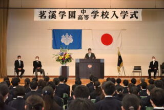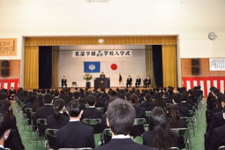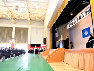 真新しい制服に袖を通した新入生たちは、少し緊張した面持ちで、これからはじまる学園生活への期待を胸に、宮﨑校長やご来賓の祝辞、在学生代表のお祝いの言葉に耳を傾けていました。