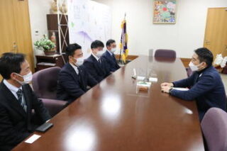 松永キャプテンは五十嵐市長に、全国大会出場報告と併せて「自分たちのラグビーを行って、全国一になることを目標に今回も頑張ります。」と意気込みを述べました。五十嵐市長からは「決勝戦まで進出したら応援に行きたい。ぜひ活躍してほしい。」と激励のお言葉を頂きました。