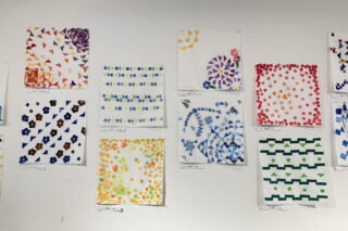 教育実習生が実施した授業の作品です。高校2年生の絵画コースはハンカチ、立体コースはオブジェを制作しました。