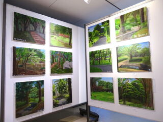 中学3年生の美術選択者が、本校に隣接している赤塚公園の風景を油絵で描きました。