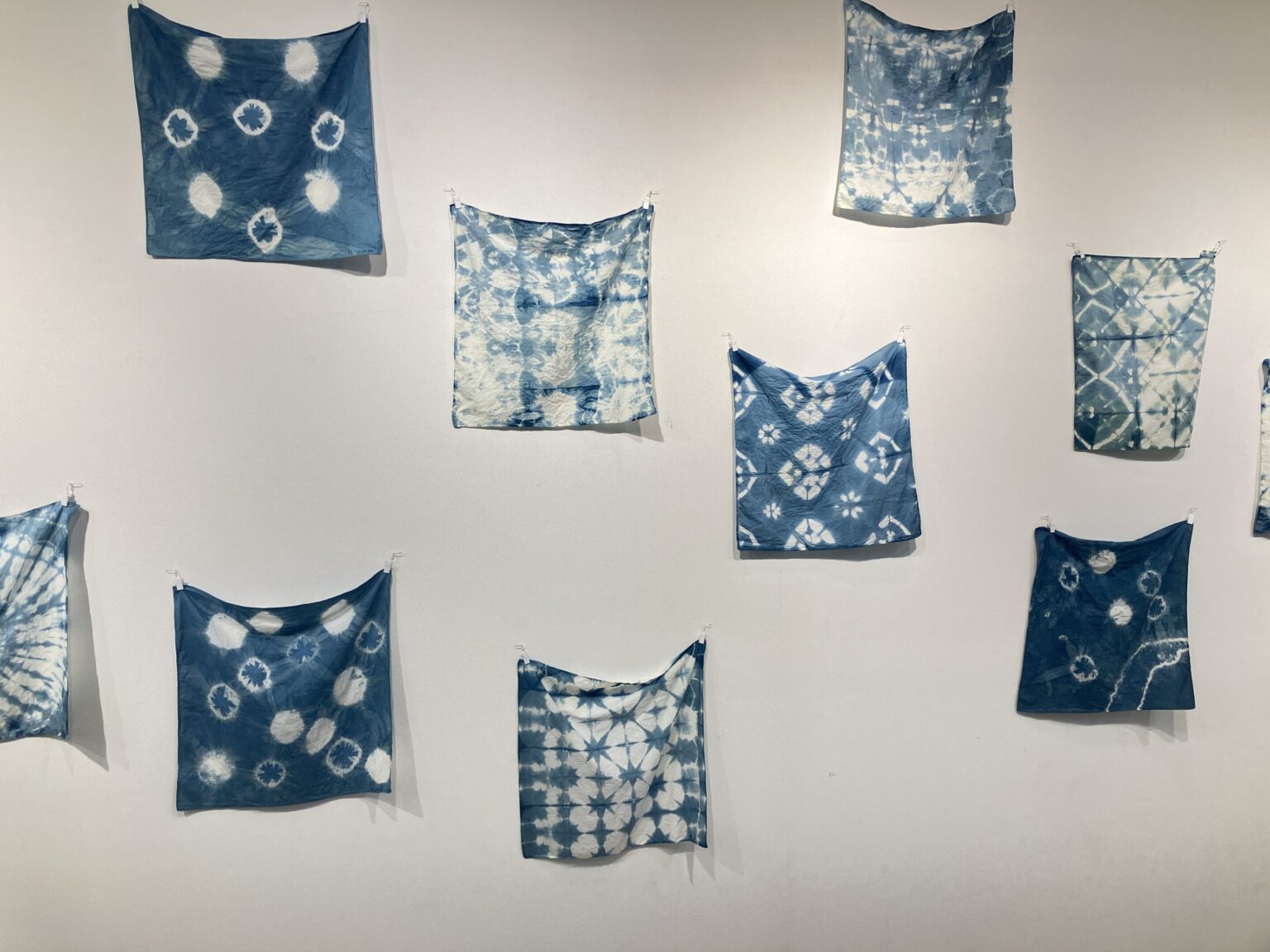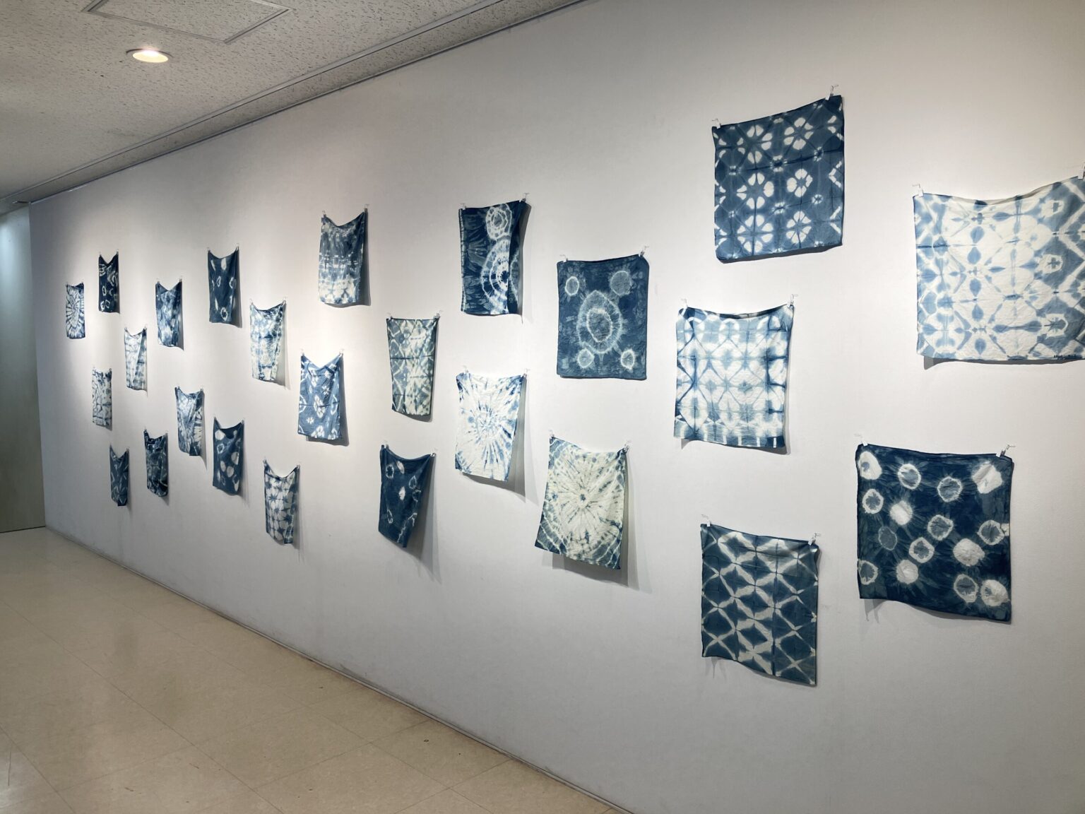 アートギャラリーA:「47回生 中学3年EF組 藍の絞り染め」