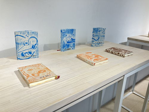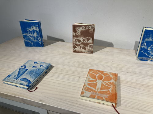 表紙は、各自がデザインした図案を紙版画にし、布に刷ったものを使用しています。