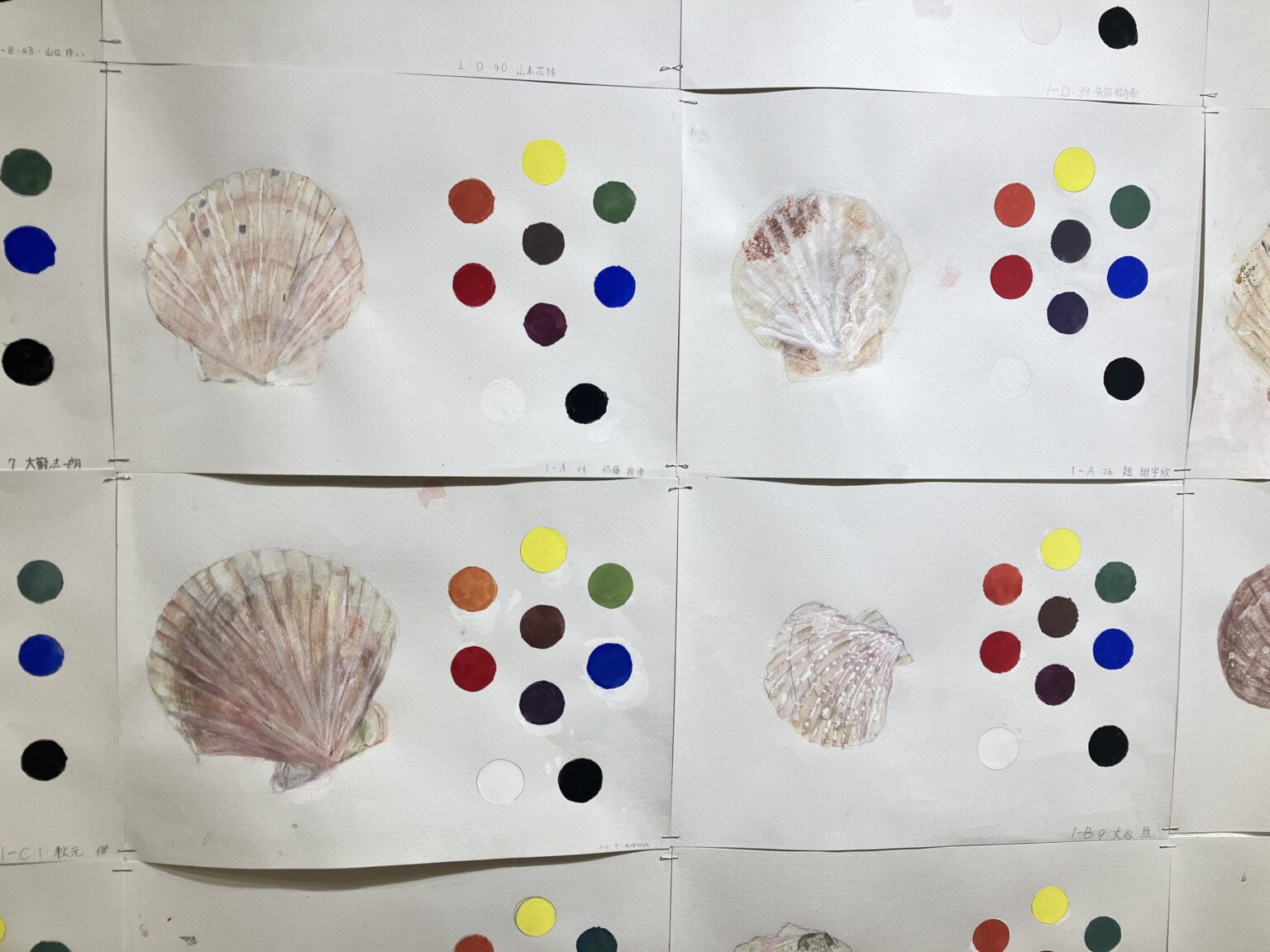 2025年7-9月「50回生(中1)ちりがみ・たまご、三原色で描くホタテ貝」