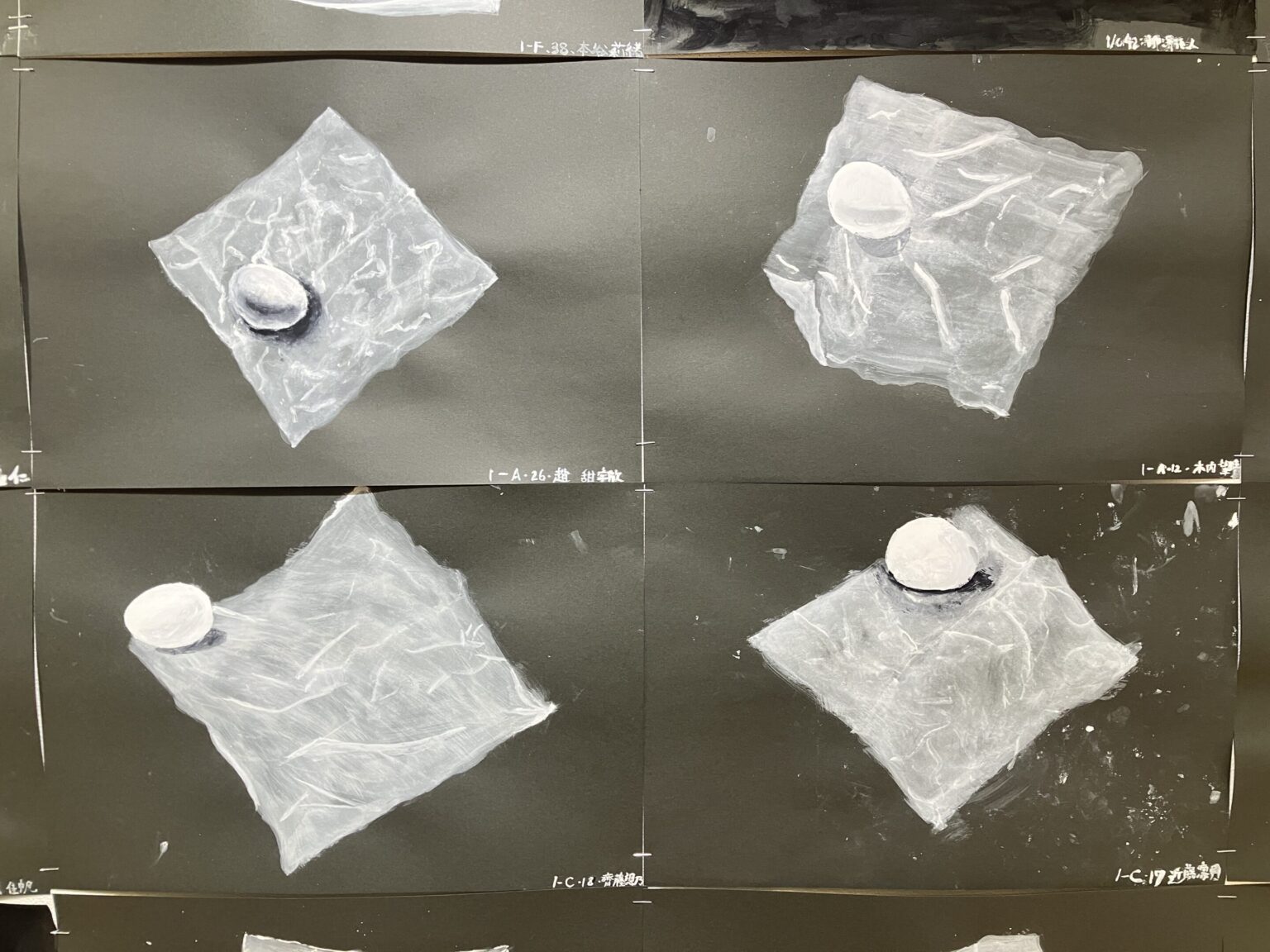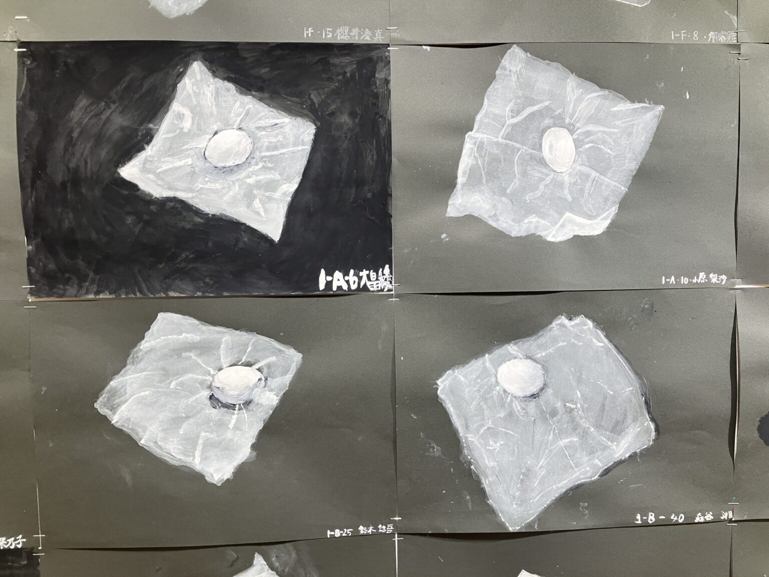 ティッシュの上に卵を置いたモチーフを、アクリルガッシュで描きました。濃淡の付け方や、筆遣いを練習するための作品です。