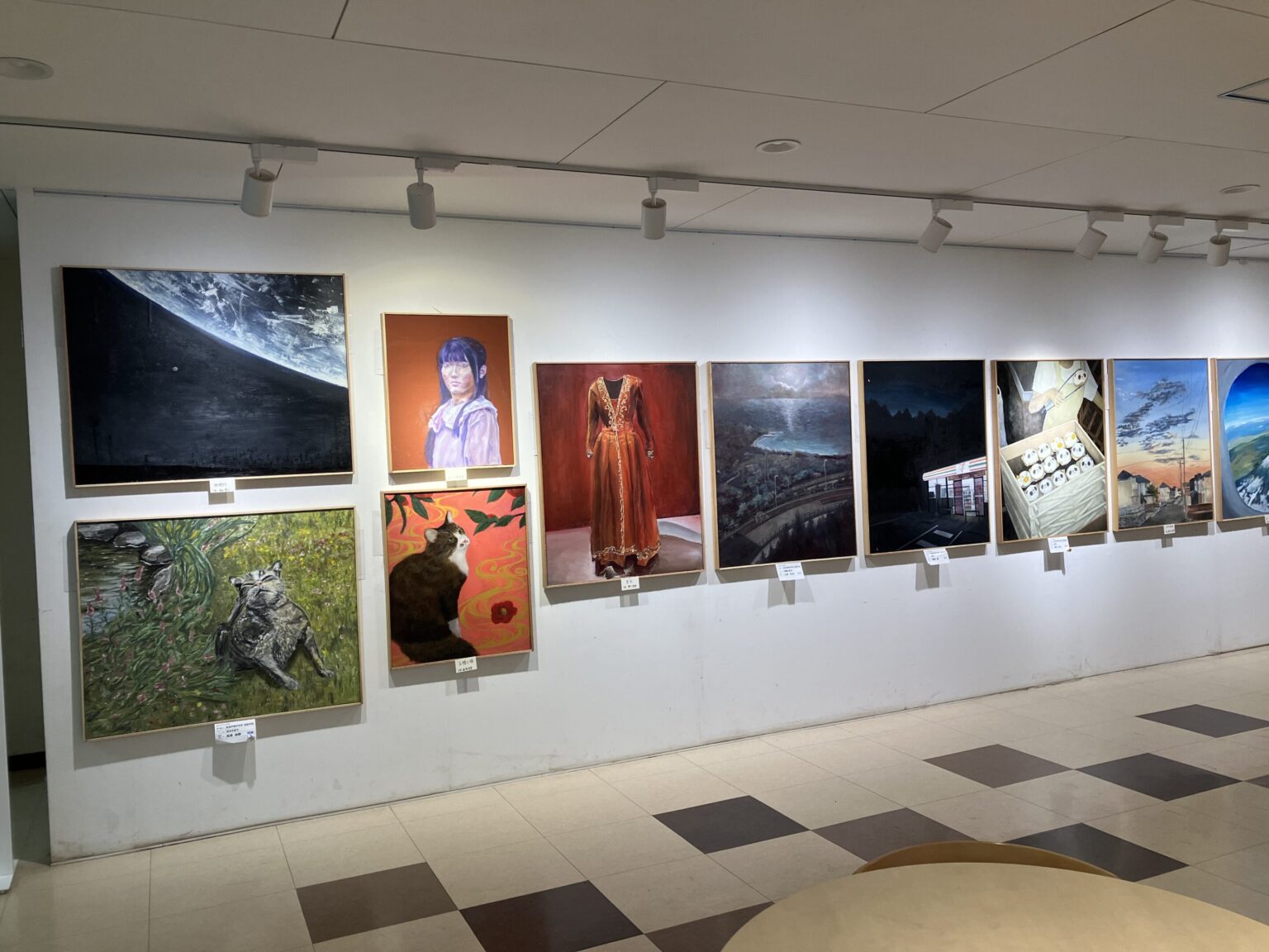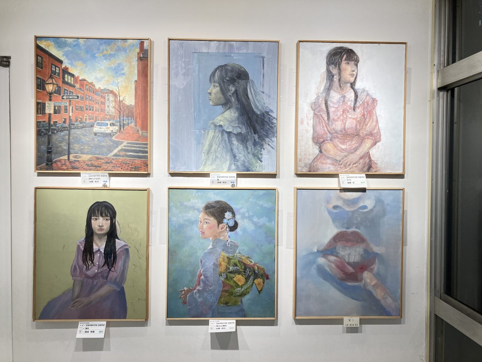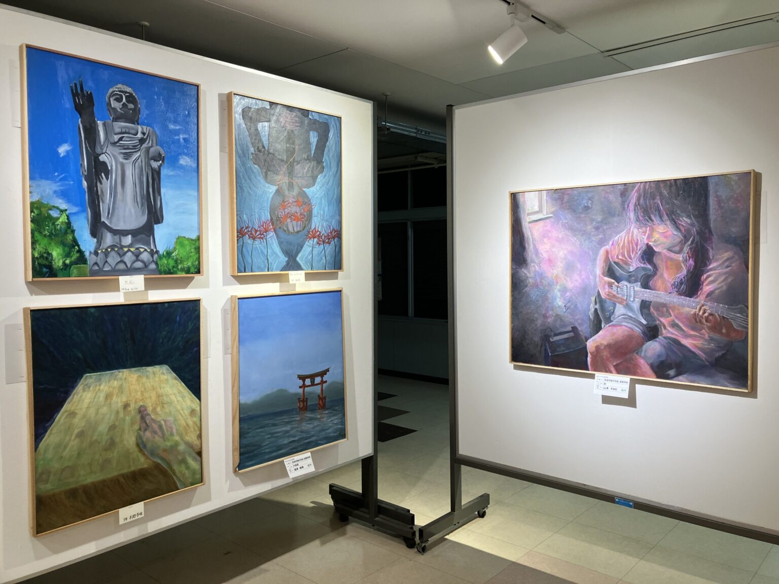 美術部が全日本学生美術展に出品した作品の中で一人2点を選抜して展示しています。