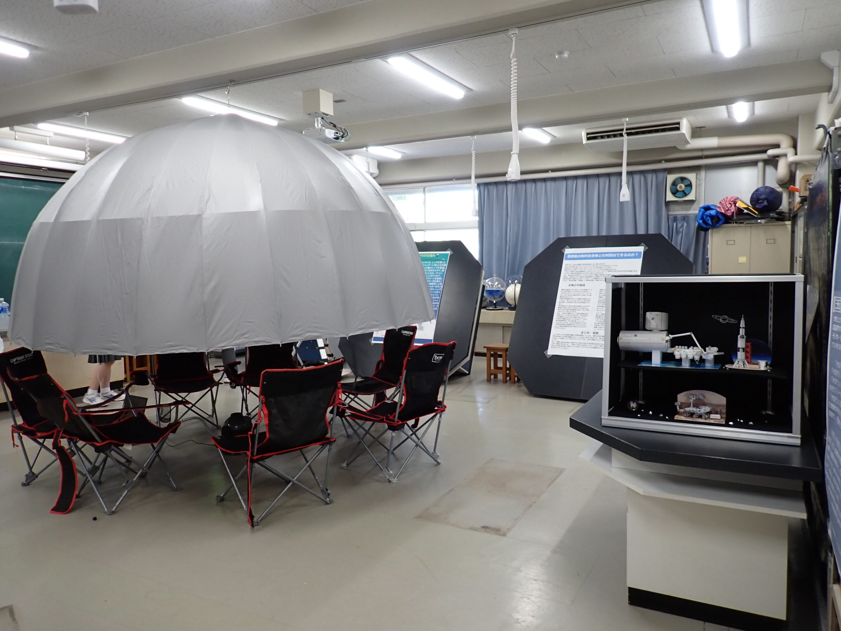 科学部天文班では中高生が一緒に活動し、星空や天文現象についての知識や経験を深めています。放課後、週1~2回の定例会では天体望遠鏡などの操作練習や維持管理、勉強会を行います。桐創祭(文化祭)ではおもにプラネタリウムを上映し、新入生入部時や月食などの天文現象があるときは校内で夜間観測を行います。また、夏休みや春休みの長期休暇期間には、校外で2~3泊の合宿を企画し、天文台を見学したり、星空を観察したり、写真を撮影したりしています。