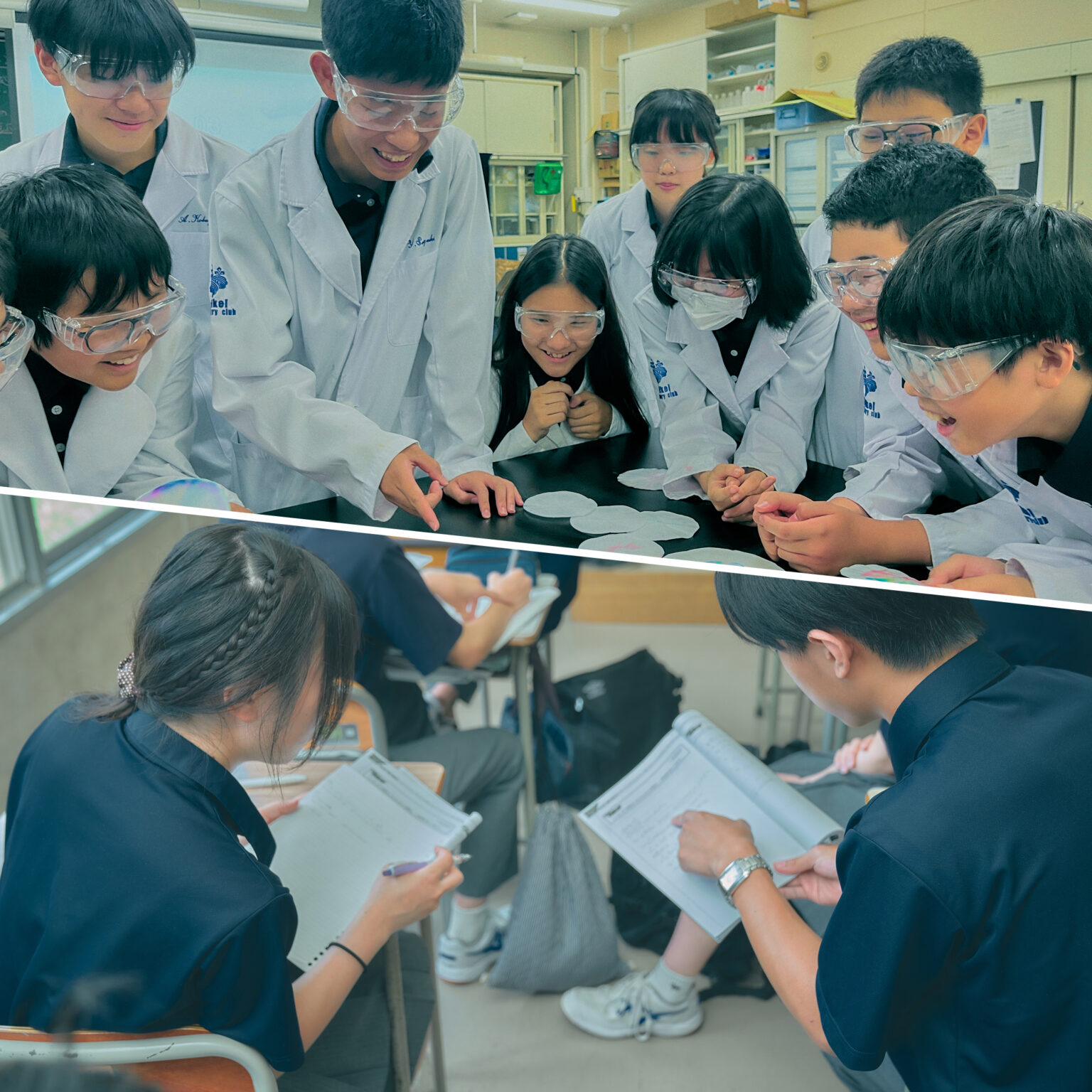 理科では、思考力・課題発見力・探究力・表現力・概念化・情報処理力の6つの茗溪サイエンスリテラシーを包括的に身につけられる理科教育を展開し、物事を鵜呑みにしない、世界で活躍できる生徒の育成を目指しています。