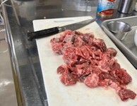 11月の調理実習では、「地産地消」をテーマに取り組みました。メニューは「常陸牛のビーフストロガノフ」「ビシソワーズ」「レンコンサラダ」です。家庭科担当の岡田先生によると、使用した常陸牛は常陸牛振興協会よりご提供いただいたものとのことです。立派なお肉を前に、思わず拍手が起こるクラスもあり、大変充実した実習となりました。
