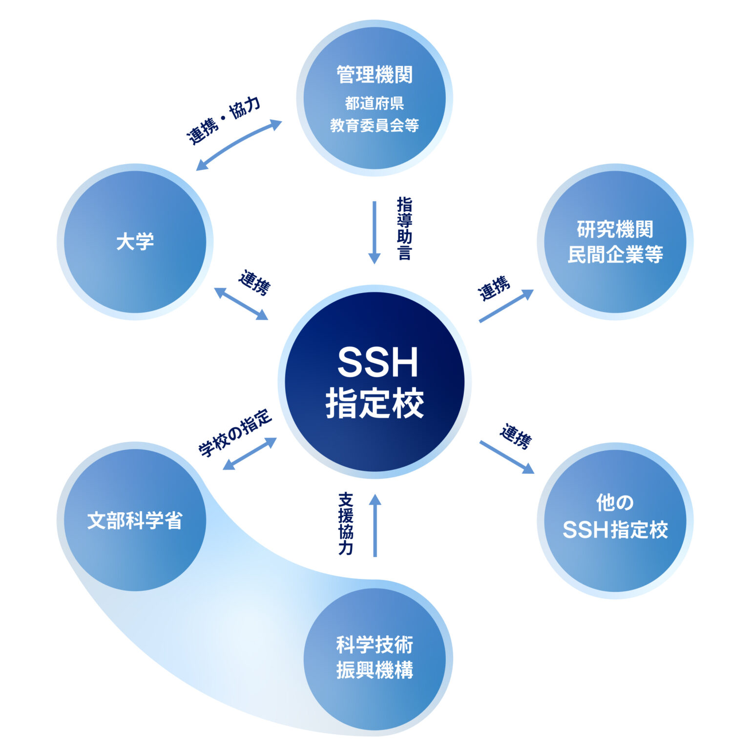 「科学への夢」や「科学を楽しむこころ」を育み、生徒の個性と能力を一層伸ばしていくことを目指しています。SSHに指定された中学校・高等学校は、文部科学省や関係する機関の支援を受けながら主に科学系・理数系教育の充実をはかります。