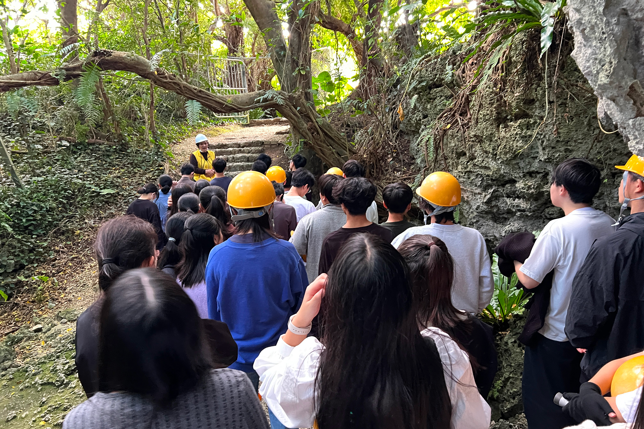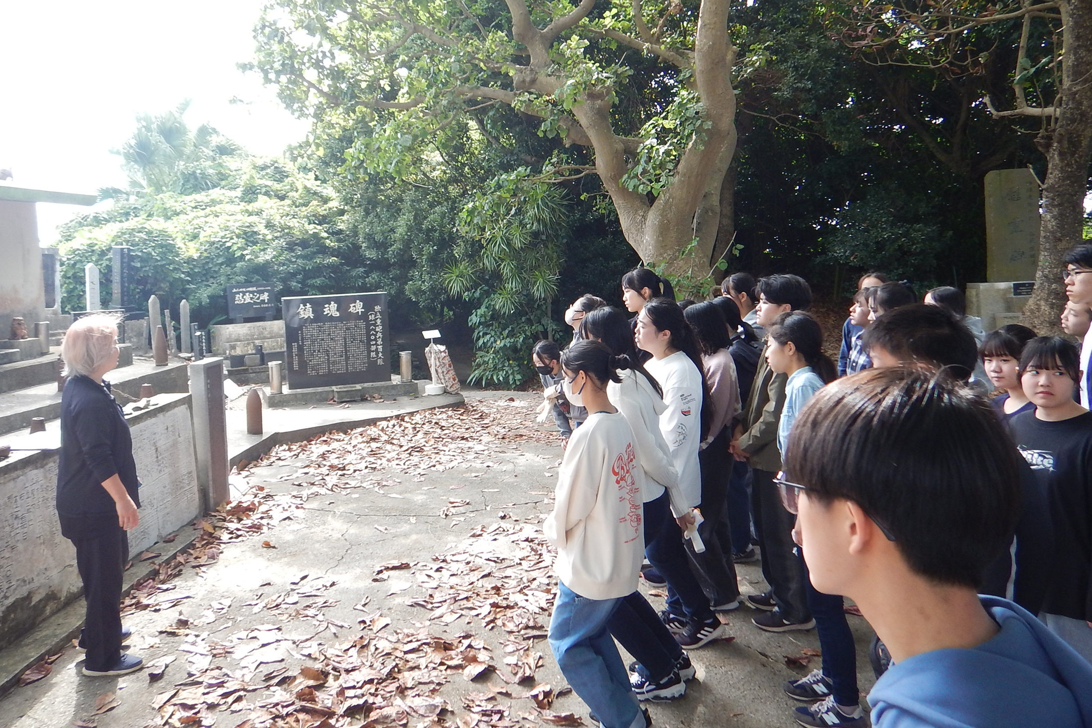「平和とは」をテーマに、4月から長い時間をかけて事前学習を行い、高校生での個人課題研究も見据えて、一人ひとりが興味のある分野での研究を深めます。南部戦跡巡りや中北部での自然体験、さらに大学・研究所見学も行います。自らの研究テーマに合わせて班ごとに行動計画を立て、班別研修を行い、研究のために必要な方法や問いの立て方も学びながら、現地での学びをもとに論文を執筆します。